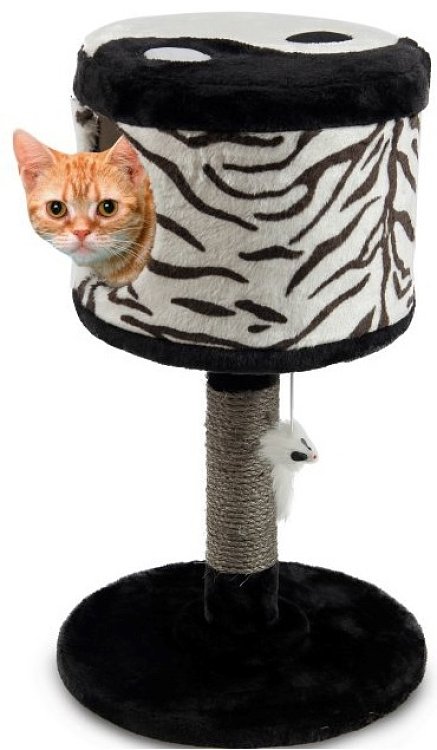Άνετη Κρυψώνα/Φωλιά: Το επάνω μέρος λειτουργεί ως άνετο κρεβάτι/κρυψώνα όπου η γάτα σας μπορεί να κρυφτεί και να κοιμηθεί με ασφάλεια. Διαθέτει άνοιγμα εισόδου (όπως φαίνεται στην εικόνα) και πιθανώς και άνοιγμα στην κορυφή.
