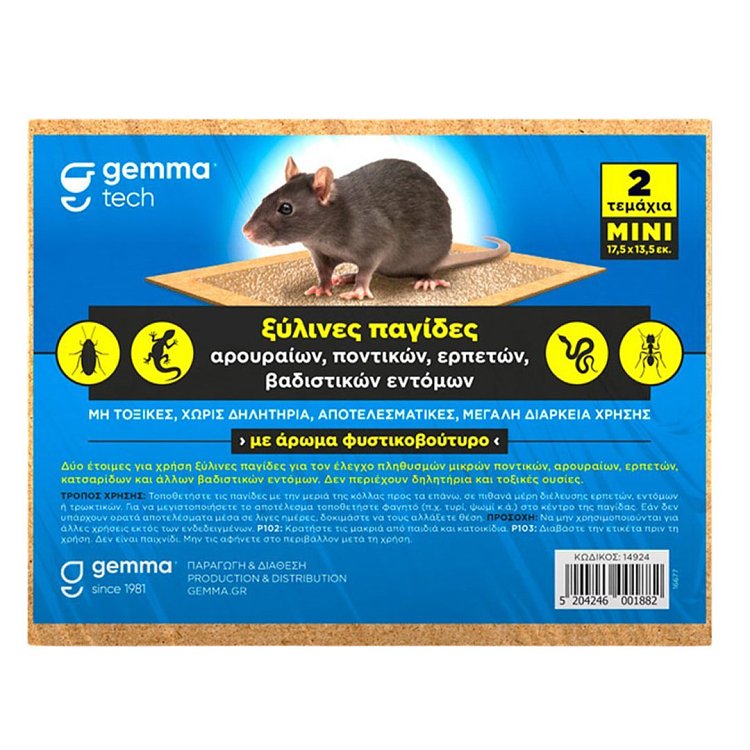Δύο έτοιμες για χρήση ξύλινες παγίδες για τον έλεγχο πληθυσμών μικρών ποντικών, αρουραίων, ερπετών και άλλων βαδιστικών εντόμων. Δεν περιέχουν δηλητήρια και τοξικές ουσίες.