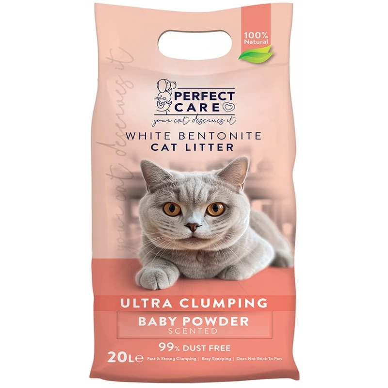 Άμμος Γάτας Perfect Care Baby Powder Μπετονίτης . Άμμος υγιεινής από λευκό μπετονίτη με μυρωδιά πούδρας.