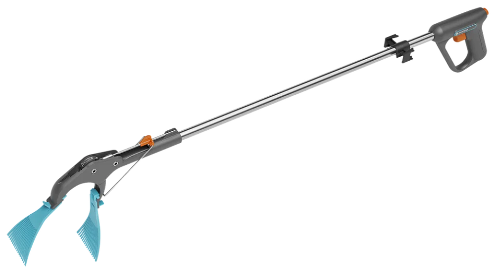 Τα εξαρτήματα συλλογής, κοπής με λόγχη, πιασίματος και τσουγκράνας διευκολύνουν τη συλλογή απορριμμάτων και απορριμμάτων κήπου χωρίς να χρειάζεται να σκύβετε. Χάρη στο εργονομικό της σχήμα, η λαβή εφαρμόζει άνετα στο χέρι και είναι εξοπλισμένη με λειτουργία περιστροφής. Αυτό καθιστά επίσης δυνατές διαφορετικές γωνίες εργασίας, κάτι που μπορεί να είναι ιδιαίτερα χρήσιμο για τη συλλογή φύλλων ή σκουπιδιών.