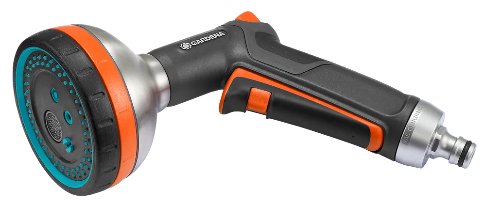 Το Πιστόλι Νερού Πολλαπλών Επιλογών Premium της GARDENA μπορεί να εκτελέσει όλες τις εργασίες ποτίσματος και καθαρισμού, προσφέροντας την επιλογή πέντε διαφορετικών τύπων εκτόξευσης: απαλό ψεκασμό, λεπτή ομίχλη, σπρέι φυσσαλίδων, πίδακα πίεσης και επίπεδο πίδακα. Το Πιστόλι Νερού είναι εφοδιασμένο με μεταλλικά στοιχεία στην κεφαλή ψεκασμού και τον σύνδεσμο, καθιστώντας το εξαιρετικά ανθεκτικό. Τα μαλακά πλαστικά στην κεφαλή πιστολιού ψεκασμού προσφέρουν προστασία από φθορές. Η εργονομική λαβή με μαλακά πλαστικά επιτρέπει τη βέλτιστη άνεση χειρισμού κατά τη λειτουργία. Η ροή του νερού μπορεί να ρυθμιστεί ελεύθερα. Για συνεχές πότισμα, η σκανδάλη διαθέτει κλείδωμα για να μην κουράζεται το χέρι σας. Το φίλτρο μπορεί να αφαιρεθεί και να καθαριστεί. Το Πιστόλι Νερού Πολλαπλών Επιλογών Premium διαθέτει ενσωματωμένη προστασία από τον παγετό.