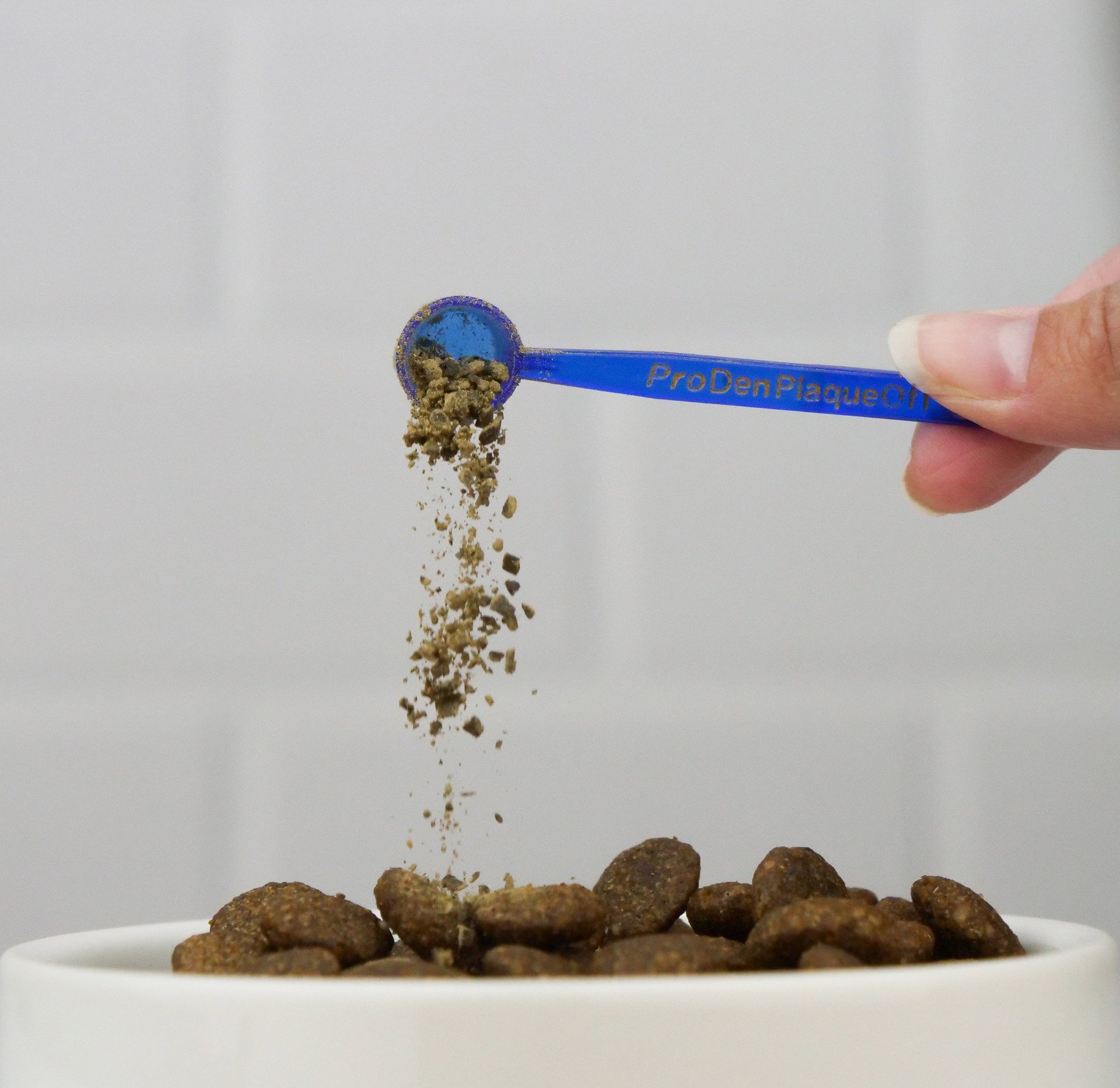 Η ProDen PlaqueOff Σκόνη είναι ένα 100% φυσικό συμπλήρωμα διατροφής για κατοικίδια που περιέχει το φυσικό και οργανικό συστατικό, το φύκι A.N ProDen® - το οποίο κλινικές μελέτες αποδεικνύουν ότι μειώνει την πλάκα και την πέτρα καθώς επίσης βελτιώνει τη δυσάρεστη αναπνοή. Τα αποτελέσματα είναι ορατά συνήθως μεταξύ 3 και 8 εβδομάδων, μετά από συνεχή χρήση. Προσθέστε τη σκόνη στη συνηθισμένη τροφή του σκύλου μία φορά την ημέρα με τον ειδικό δοσομετρητή. Για ένα σκύλο βάρους 10kg, η συσκευασία των 60g διαρκεί περίπου 6 μήνες.