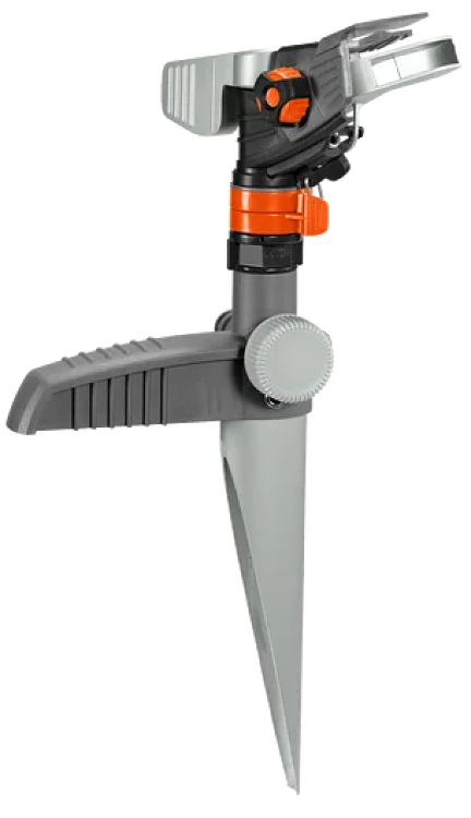 Το Παλμικό Καρφωτό Μπεκ Κύκλου/Ημικύκλιου Premium της GARDENA ποτίζει άνετα μεγάλες περιοχές. Είναι κατασκευασμένο από ανθεκτικό συνδυασμό μετάλλου και πλαστικού. Έτσι, η κεφαλή ποτιστικού είναι ιδιαίτερα σταθερή. Στους δακτυλίους ρύθμισης μπορείτε εύκολα να ορίσετε τον τομέα προς άρδευση με επιλογή ακτίνας ακριβείας από 25° έως 360°. Ο επιλεγμένος τομέας φαίνεται εύκολα σε αυτούς τους δακτυλίους ρύθμισης ανά πάσα στιγμή. Το ορειχάλκινο ακροφύσιο υψηλής ακρίβειας υποστηρίζει την ακριβή κατανομή του νερού. Με το μεγάλο, εύχρηστο περιστροφικό κουμπί μπορείτε να ρυθμίσετε την ακτίνα. Η περιοχή ρύθμισης είναι από 5 m έως 12,5 m το μέγιστο. Μπορείτε να ποτίσετε μια περιοχή από 75 m² έως 490 m2 το μέγιστο. Το σπείρωμα συναρμογής βιδώνεται στην κεφαλή ποτιστικού και έχει διάμετρο 21 mm (G 1/2). Ο ψεκαστήρας είναι συναρμολογημένος σε μεταλλική ράβδο. Έτσι, το Παλμικό Καρφωτό Μπεκ Κύκλου/Ημικύκλιου Premium της GARDENA μπορεί εύκολα να στερεωθεί στο γκαζόν. Επίσης, μπορεί να αφαιρεθεί και να τοποθετηθεί σε άλλο σημείο το ίδιο εύκολα. Το ποτιστικό είναι εξοπλισμένο με ταχυσύνδεσμο Original GARDENA System και τάπα. Μπορείτε να τον χρησιμοποιήσετε αμέσως. Με το ρακόρ GARDENA (Κωδ. πρ. 901) είναι δυνατή η σύνδεση πολλών ποτιστικών μεταξύ τους. Έτσι, γίνεται άνετα η άρδευση μεγαλύτερων περιοχών.