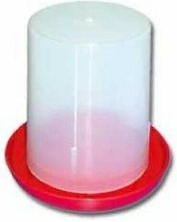 Ποτίστρα κατασκευασμένη από ημι-διάφανο υλικό για έλεγχο της στάθμης του νερού. Κατάλληλη για περίπου 50 νεοσσούς όρνιθας ή 30 ορτύκια Kατασκευασμένη από πρωτογενές πλαστικό, ελεύθερο καδμίου και μολύβδου Χρώμα ανθεκτικό σε UV Tο γαλάζιο χρώμα επιτρέπει τον οπτικό έλεγχο της στάθμης του νερού και αποτρέπει την ανάπτυξη άλγεων Πάχος πλαστικού: 2.4 mm Διαστάσεις: Ø 14.5 cm ( σιλό πάνω μέρος), Ø 20 cm (σιλό κάτω μέρος), Y21.5 cm