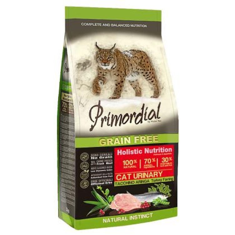 Πλήρης τροφή χωρίς σιτηρά για γάτες με ευαισθησία στο ουροποιητικό σύστημα, εξαιρετικά εύπεπτη και πλούσια σε πρωτεΐνες και απαραίτητα αμινοξέα υψηλής βιολογικής αξίας. Η ποσότητα των φυτικών πρωτεϊνών έχει μειωθεί καθώς μπορούν να οδηγήσουν σε προβλήματα νεφρών με την πάροδο του χρόνου. Το κρέας γαλοπούλας, αυστηρά από ζώα ελευθέρας βοσκής, παρέχει εύπεπτες πρωτεΐνες και έχει υπέροχη γεύση που αγαπούν οι γάτες. Η ρέγγα αποτελεί πλούσια πηγή λιπαρών οξέων Ωμέγα 3, τα οποία επιτελούν μια σημαντική καλλυντική δράση στο δέρμα και το τρίχωμα και είναι ιδιαίτερα ευεργετικά για το καρδιαγγειακό σύστημα. Εμπλουτισμένη με φρούτα και λαχανικά που προσφέρουν βιταμίνες, μέταλλα και θρεπτικά συστατικά. Το φυτό Λεσπεδέζα που έχει ωφέλιμες επιδράσεις στο ουροποιητικό σύστημα, το μύρτιλο που έχει αντιοξειδωτική δράση και η χαμηλή περιεκτικότητα σε μέταλλα που μπορεί να οδηγήσουν στον σχηματισμό πέτρας στα νεφρά, δινουν σε αυτή την τροφή τέλεια ισσοροπία γεύσης και θρεπτικότητας. Ένα πραγματικά ολιστικό προϊόν που συμβάλλει ενεργά στη συνολική υγεία των γατών.