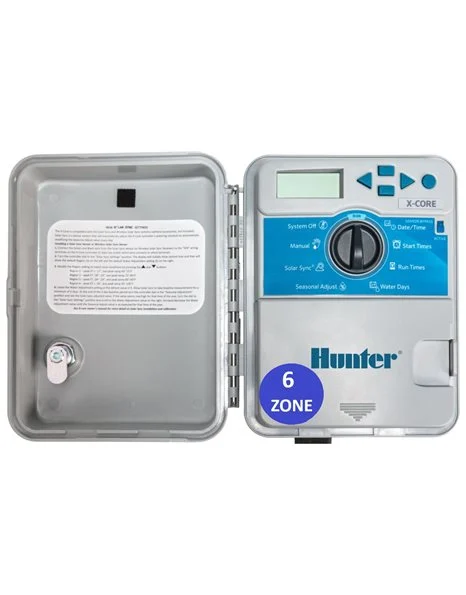 Προγραμματιστής αυτόματου ποτίσματος Hunter X-Core εξωτερικού χώρου 4, 6, 8 στάσεων. Αξιόπιστος προγραμματιστής για μικρά αρδευτικά δίκτυα με βελτιωμένα χαρακτηριστικά. Απευθύνετε σε όσους θέλουν ένα μικρό προγραμματιστή με χαμηλό κόστος και κάποια extra χαρακτηριστικά.