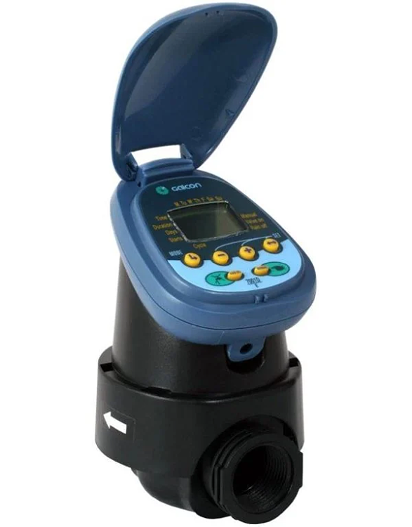 Ο προγραμματιστής ποτίσματος μπαταρίας της Galcon με ηλεκτροβάνα 3/4" ή 1" είναι μίας εξόδου. Διαθέτει οθόνη LCD, με δυνατότητα πολλών και διαφόρων προγραμμάτων ποτίσματος την ημέρα, έχει επιλογή εβδομαδιαίου ή κυκλικού προγράμματος, δυνατότητα 8 επαναλήψεων ανά ημέρα και διάρκεια ποτίσματος από 1 λεπτό έως 12 ώρες. Προγραμματίζεται εύκολα με 3 βήματα και έχει εργοστασιακή εγγύηση 3 ετών. Έχει είσοδο και έξοδο 3/4" ή 1", είναι αδιάβροχος, πλαστικό κάλυμμα οθόνης και εύκολο άνοιγμα προγραμματισμού. Δυνατότητα χειροκίνητης λειτουργίας τόσο μέσω εντολής από την οθόνη ή περιστροφής του πηνίου. Λειτουργεί από το 1 bar και αντέχει σε πίεση ως και 10 bar.. Δουλεύει με 1 μπαταρία αλκαλική 9V (δεν συμπεριλαμβάνονται).