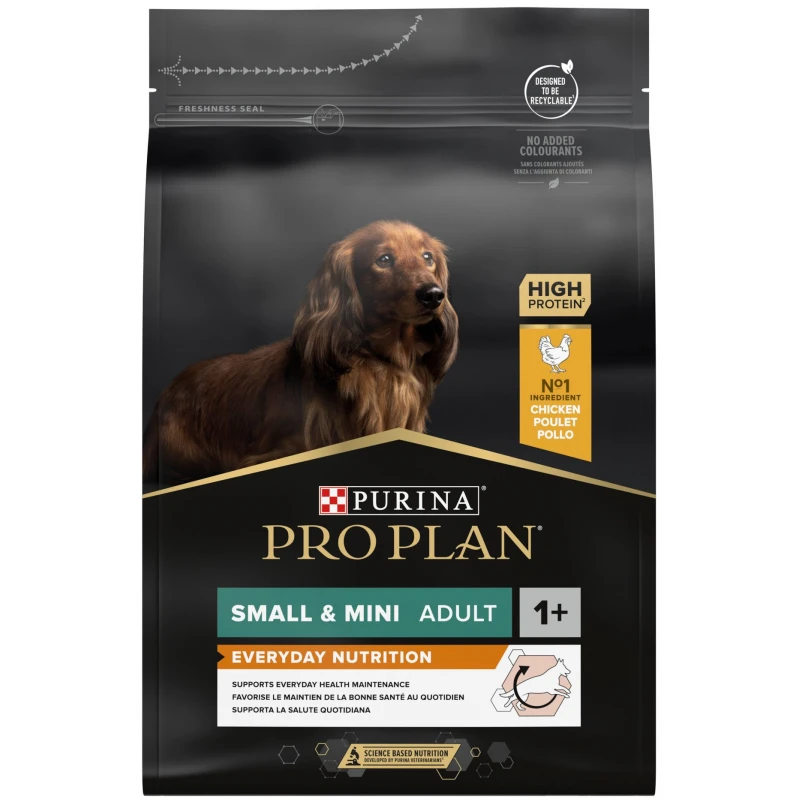 Super premium ξηρά τροφή σκύλου Pro Plan Small & Mini Adult Optibalance Everyday Nutrition with Chicken 3 kg για ενήλικους μικρόσωμους σκύλους.