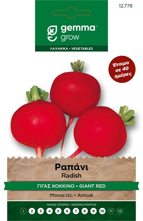 Έτοιμο σε 40 ημέρες. Μονοετές. Ποικιλία με άφθονο φύλλωμα. Ρίζα μεγάλη, κόκκινη με σάρκα συμπαγή και τραγανή. Μέτριος-μεγάλος κύκλος παραγωγής. Απόσταση φυτών (εκ.): 3-5. Απόσταση γραμμών (εκ.): 10-20. Βάθος σποράς (εκ.):1,5-2. Ημέρες φυτρώματος: 5-6. Έναρξη συγκομιδής (ημέρες): 40. Ποικιλία: Burro gigante. 5531