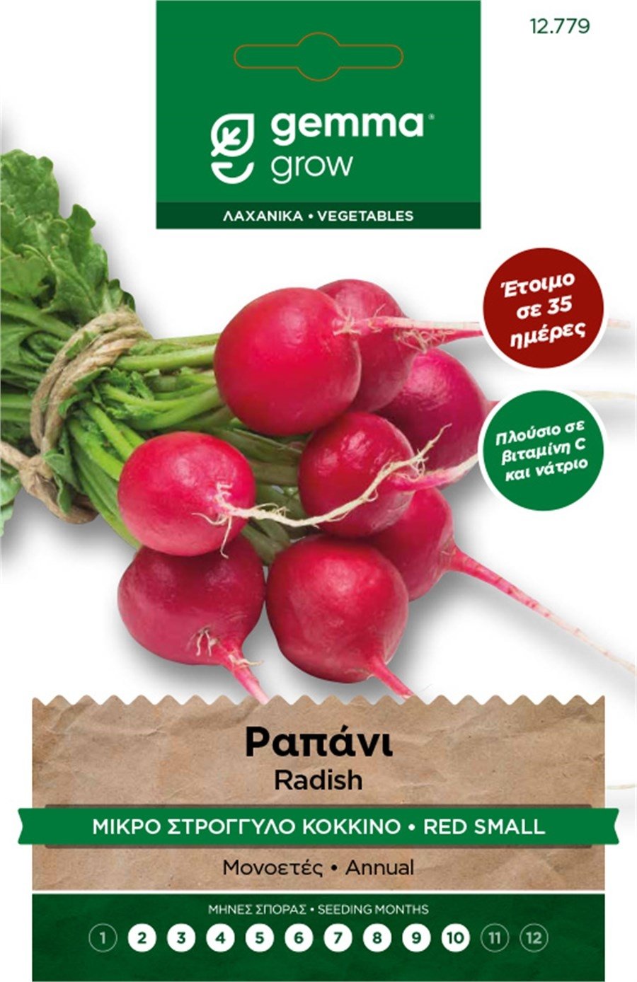 Πλούσιο σε βιταμίνη C και νάτριο. Έτοιμο σε 35 ημέρες. Μονοετές. Ποικιλία πρώιμη και παραγωγική. Με ρίζα στρογγυλή, άριστης ομοιομορφίας, έντονου κόκκινου χρώματος. Απόσταση φυτών (εκ.): 3-5. Απόσταση γραμμών (εκ.): 10-20. Βάθος σποράς (εκ.):1,5-2. Ημέρες φυτρώματος: 5-6. Έναρξη συγκομιδής (ημέρες): 35. Ποικιλία: Saxa 2. 5411