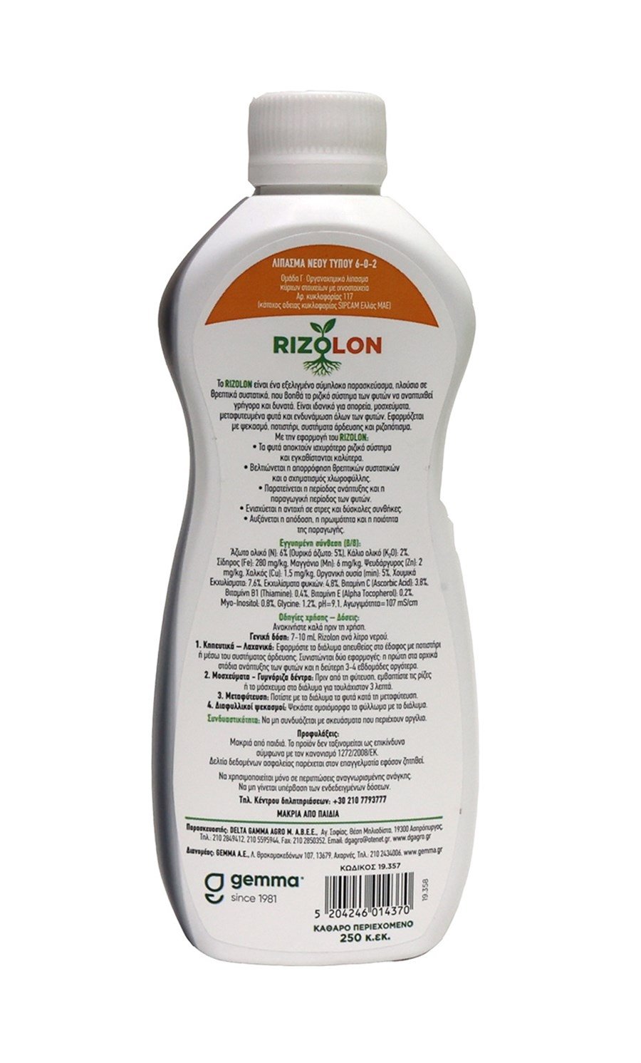Ανακινήστε καλά πριν τη χρήση. Γενική Δόση: 7-10 ml Rizolon ανά λίτρο νερού.