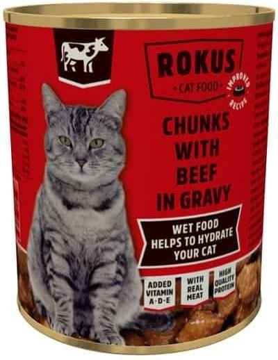Συστατικά: κρέας (κοτόπουλο τουλάχιστον 12%), βοδινό κρέας (τουλάχιστον 4%), ζωικά υποπροϊόντα, δημητριακά και ανόργανα συστατικά. Ανάλυση: πρωτεΐνες 6%, ολικές λιπαρές ουσίες 4,5%, ολικές ινώδεις ουσίες 0,5%, ολική τέφρα 2%, υγρασία 81%. Πρόσθετες διατροφικές ύλες: βιταμίνη Α 1600 IU/KG, βιταμίνη D 140 IU/KG, βιταμίνη E 10 IU/KG, ταυρίνη 300 MG/KG, σίδηρος (Ε1) 24 MG/KG, μαγγάνιο (Ε5) 6 MG/KG, ψευδάργυρος (Ε6) 15 MG/KG, χαλκός (Ε4) 1 MG/KG, ιώδιο (Ε4) 0,3 MG/KG, σελήνιο (E8) 0,2 MG/KG, μαγνήσιο 200 MG/KG.