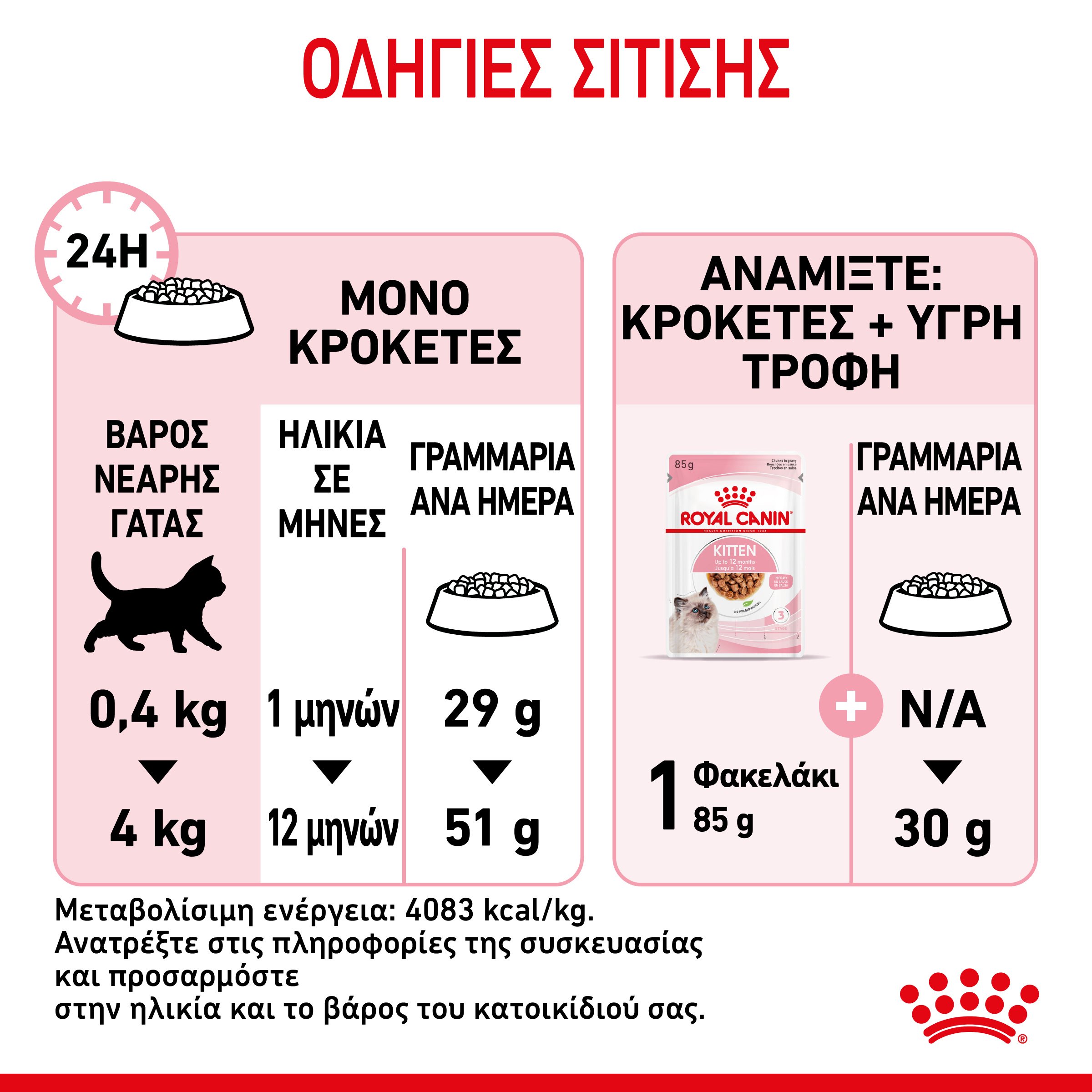 Πλήρης τροφή με πουλερικά και ρύζι, σχεδιασμένη για να καλύπτει τις διατροφικές ανάγκες των νεαρών γατών κατά τη φάση της εντατικής ανάπτυξής τους, από 4 έως 12 μηνών. Με μια ισορροπημένη φόρμουλα που περιέχει απαραίτητα θρεπτικά συστατικά, υποστηρίζει την ανάπτυξη των οστών, ενώ ενισχύει την υγεία του πεπτικού συστήματος και τη σωστή λειτουργία του εγκεφάλου. Υποστηρίζει την ανάπτυξη του ανοσοποιητικού συστήματος χάρη σε ένα επιστημονικά αποδεδειγμένο σύμπλεγμα βιταμινών Ε και C, που διεγείρει την παραγωγή αντισωμάτων και ενισχύει την άμυνα του οργανισμού.