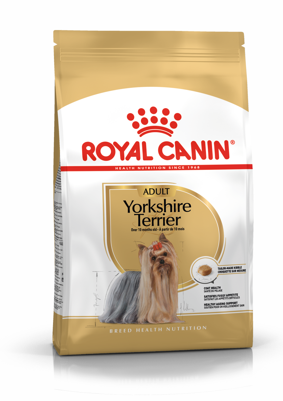 Επειδή κάθε φυλή έχει τις δικές της ειδικές απαιτήσεις, η σειρά Breed Health Nutrition της ROYAL CANIN® ικανοποιεί τις διατροφικές ανάγκες των σκύλων διαφορετικών φυλών για να υποστηρίξει τη βέλτιστη υγεία. Για τους σκύλους Yorkshire Terriers ηλικίας άνω των 10 μηνών, ο ROYAL CANIN® Yorkshire Terrier Adult είναι ειδικά σχεδιασμένο τισ ανάγκεσ τους. Περιλαμβάνει για την υποστήριξη του τριχώματος τα λιπαρά ωμέγα-6 λιπαρά οξέα (EPA & DHA), το έλαιο μποράγου και το biotin.Το ROYAL CANIN® Yorkshire Terrier Adult ικανοποιεί ακόμα και τις πιο απαιτητικές ορέξεις, χάρη σε ένα συνδυασμό εξαιρετικών γεύσεων που ο σκύλος σας δεν θα μπορέσει να αντισταθεί! Η καλή στοματική υγιεινή αποτελεί σημαντικό παράγοντα για την επιλογή της τροφής. Το ROYAL CANIN® Yorkshire Terrier Adult βοηθάει στην επιβράδυνση του σχηματισμού πέτρας μέσω της ακριβούς συμπερίληψης των χηλικών συμπλοκών ασβεστίου. Για να ικανοποιήσει τις ατομικές προτιμήσεις κάθε σκύλου, το ROYAL CANIN® Yorkshire Terrier Adult είναι επίσης διαθέσιμο σε υγρή τροφή σε ένα μαλακό και νόστιμο πατέ. Αν σκέφτεστε να κάνετε μεικτή σίτιση, ακολουθήστε απλώς τις οδηγίες μας σχετικά με τη διατροφή του για να διασφαλίσετε ότι ο σκύλος σας λαμβάνει μια ακριβή ποσότητα υγρής και ξηράς τροφής για βέλτιστο όφελος.