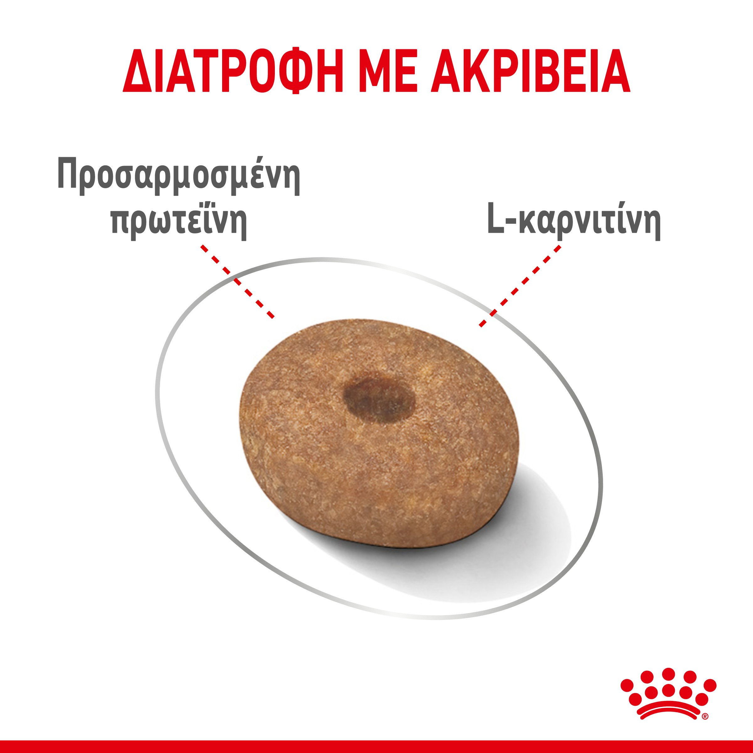 Πλήρης τροφή με πουλερικά, για ενήλικους και ώριμους σκύλους μικρόσωμων φυλών, ηλικίας άνω των 10 μηνών και σωματικού βάρους 1-10 kg, με τάση αύξησης βάρους. Αυτή η διατροφική φόρμουλα, με ισχυρή ισορροπία, συμβάλλει στη διατήρηση και επίτευξη του ιδανικού βάρους του σκύλου. Η υψηλή περιεκτικότητα σε πρωτεΐνη βοηθά στη διατήρηση της μυϊκής μάζας, ενώ η χαμηλή περιεκτικότητα σε λιπαρά συμβάλλει στον περιορισμό της αύξησης βάρους. Η τροφή περιέχει 15% λιγότερες θερμίδες και L-καρνιτίνη, καθώς και ένα ειδικό μείγμα ινών που ενισχύει το αίσθημα κορεσμού. Οι μικρόσωμοι σκύλοι είναι επιρρεπείς στη δημιουργία τρυγίας και η τροφή αυτή βοηθά στη μείωση του σχηματισμού της χάρη στους χηλικούς παράγοντες που δεσμεύουν το ασβέστιο του σάλιου.