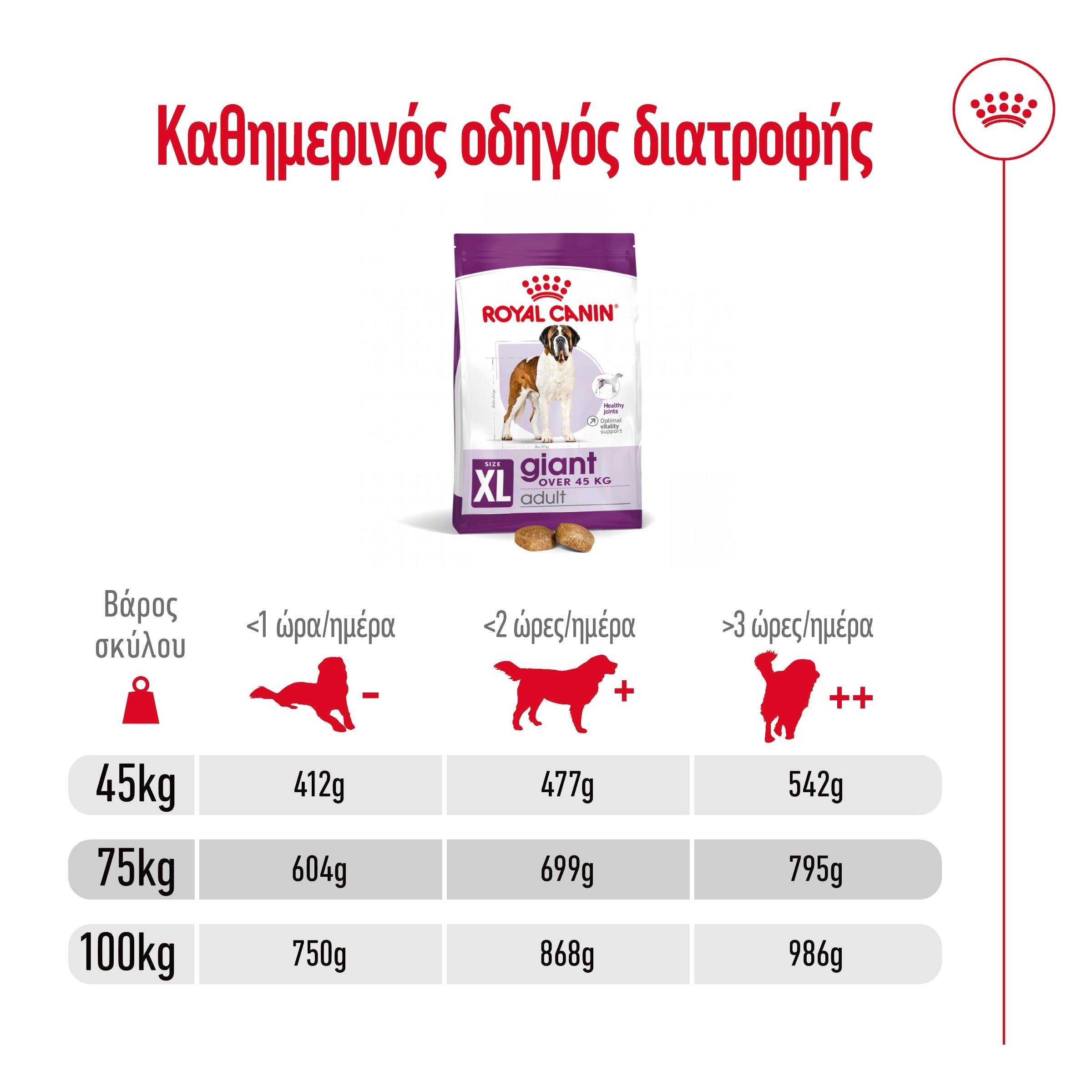 Πλήρης τροφή με πουλερικά, ειδικά σχεδιασμένη για ενήλικους γιγαντόσωμους σκύλους άνω των 45 κιλών. Αυτή η τροφή είναι πλήρης και ισορροπημένη, προσαρμοσμένη στις ιδιαίτερες διατροφικές ανάγκες των γιγαντόσωμων φυλών, υποστηρίζοντας την υγεία και τη ζωτικότητα καθ' όλη τη διάρκεια της ενήλικης ζωής τους. Το αυξημένο σωματικό βάρος και η δραστήρια φύση αυτών των σκύλων συχνά ασκούν έντονη πίεση στις αρθρώσεις τους. Η μοναδική σύνθεση αυτής της τροφής, εμπλουτισμένη με μεταλλικά στοιχεία και θρεπτικά συστατικά, συμβάλλει στην υποστήριξη της υγείας των οστών και των αρθρώσεων.Η παρατεταμένη διάρκεια της πεπτικής διάβασης που χαρακτηρίζει τους γιγαντόσωμους σκύλους μπορεί να τους κάνει πιο επιρρεπείς σε πεπτικές ευαισθησίες. Αυτή η συνταγή περιέχει πρωτεΐνες υψηλής πεπτικότητας και ισορροπημένη ποσότητα διαιτητικών ινών για τη βελτίωση της πεπτικής υγείας. Επιπλέον, η τροφή είναι εμπλουτισμένη με βιταμίνες που βοηθούν στη διατήρηση της ζωτικότητας και στην προστασία από τις ελεύθερες ρίζες, ενισχύοντας τη συνολική ευεξία. Η κροκέτα είναι ειδικά σχεδιασμένη σε μεγάλο μέγεθος, προσαρμοσμένο στα σαγόνια των γιγαντόσωμων φυλών, και το σχήμα της ενθαρρύνει τη σωστή μάσηση, συμβάλλοντας στη στοματική υγιεινή.