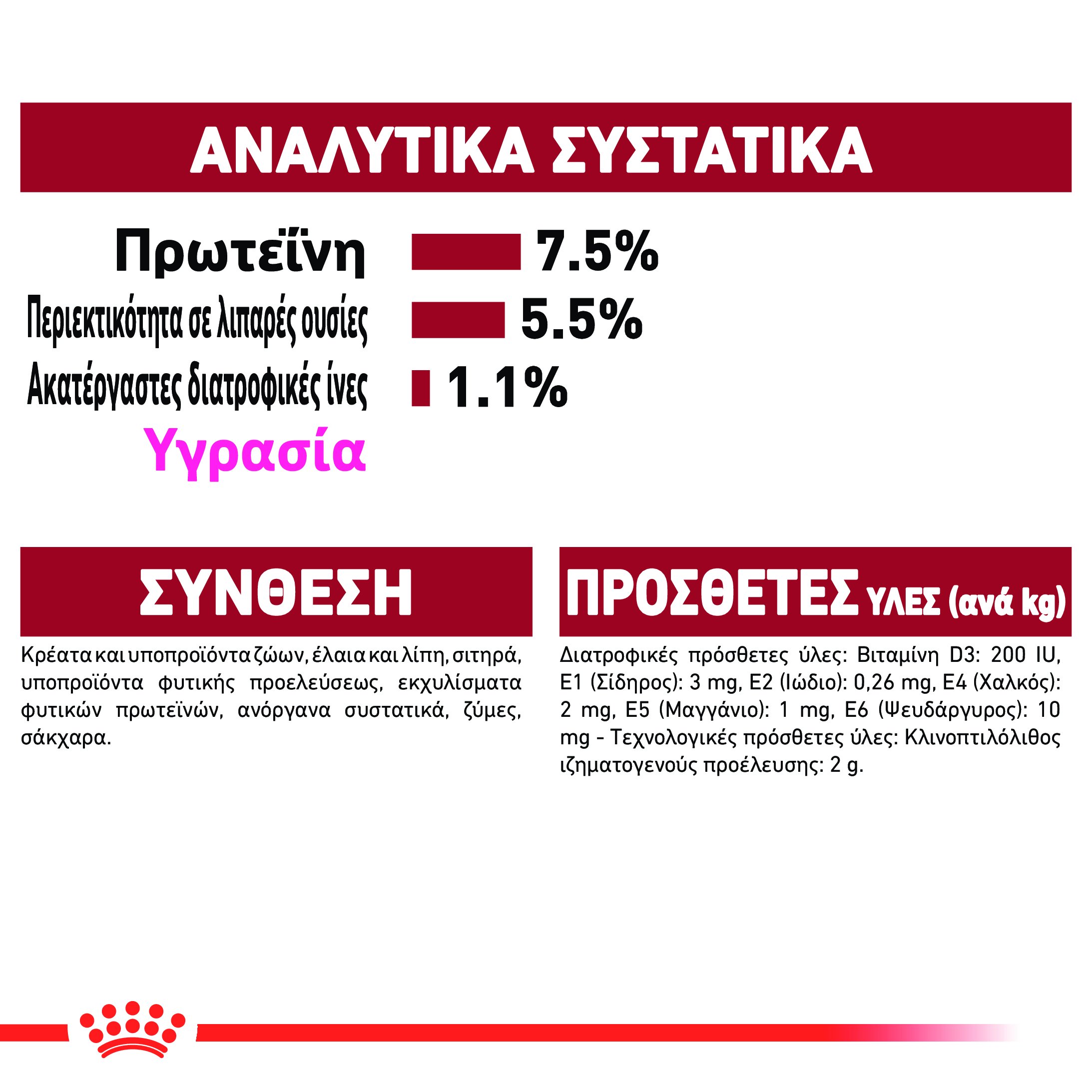 Πλήρης υγρή τροφή, με κρέας σε πατέ, για το ενήλικο σκυλάκι σας μεσαίου μεγέθους, με σωματικό βάρος 11-25kg, από 12 μηνών έως 7 ετών. Είναι εμπλουτισμένη με βιταμίνες C και E, ενισχύοντας τη μυϊκή μάζα και τους φυσικούς μηχανισμούς άμυνας, υποστηρίζοντας συνολικά την υγεία του σκύλου σας. Η περιεκτικότητα ενέργειας είναι προσαρμοσμένη στις ανάγκες μεσαίων φυλών, προκειμένου να διατηρείται το ιδανικό σωματικό βάρος. Χάρη στα υψηλής ποιότητας συστατικά, που μαγειρεύονται με ήπιο τρόπο, η τροφή είναι ιδιαίτερα εύπεπτη και συμβάλλει σε μια ισορροπημένη γαστρεντερική χλωρίδα.