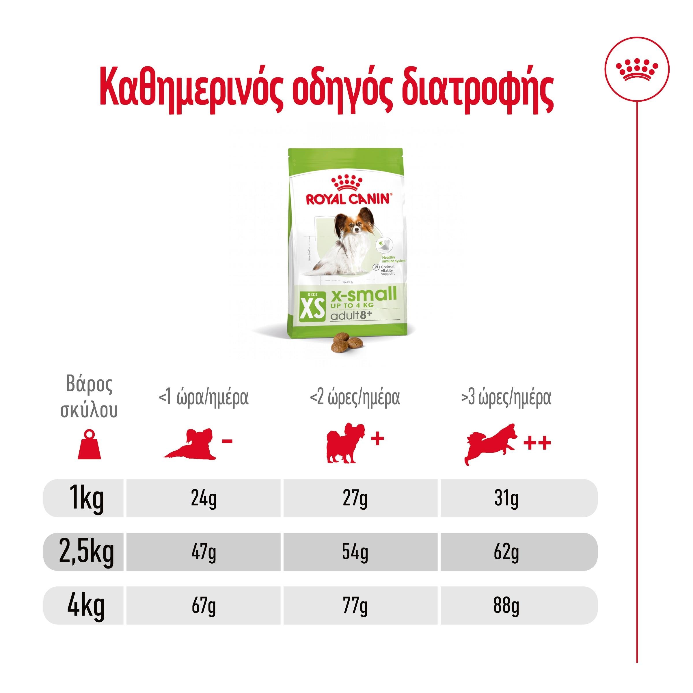 Πλήρης τροφή με πουλερικά και ρύζι, ειδικά σχεδιασμένη για πολύ μικρόσωμους ενήλικους σκύλους (έως 4kg), άνω των 8 ετών. Αυτή η τροφή είναι διατροφικά πλήρης και ισορροπημένη, καλύπτοντας τις ιδιαίτερες ανάγκες των μικρόσωμων σκύλων κατά τη διάρκεια της τελευταίας φάσης της ενηλικίωσης. Περιέχει βασικές θρεπτικές ουσίες όπως EPA, DHA και βιταμίνη C, που υποστηρίζουν την υγεία του ανοσοποιητικού συστήματος, ενώ είναι εμπλουτισμένη με βιταμίνες για τη διατήρηση της ζωντάνιας. Η ειδική της σύνθεση καλύπτει τις διατροφικές ανάγκες ακόμη και των πιο ιδιόρρυθμων σκύλων, διασφαλίζοντας τη λήψη όλων των απαραίτητων θρεπτικών ουσιών. Η κροκέτα έχει σχεδιαστεί ώστε να διευκολύνει τη λήψη τροφής, ενώ παράλληλα συμβάλλει στη φροντίδα της στοματικής υγείας. Η δράση βουρτσίσματος που δημιουργεί, σε συνδυασμό με το χηλικό ασβέστιο, μειώνει τον σχηματισμό πέτρας.
