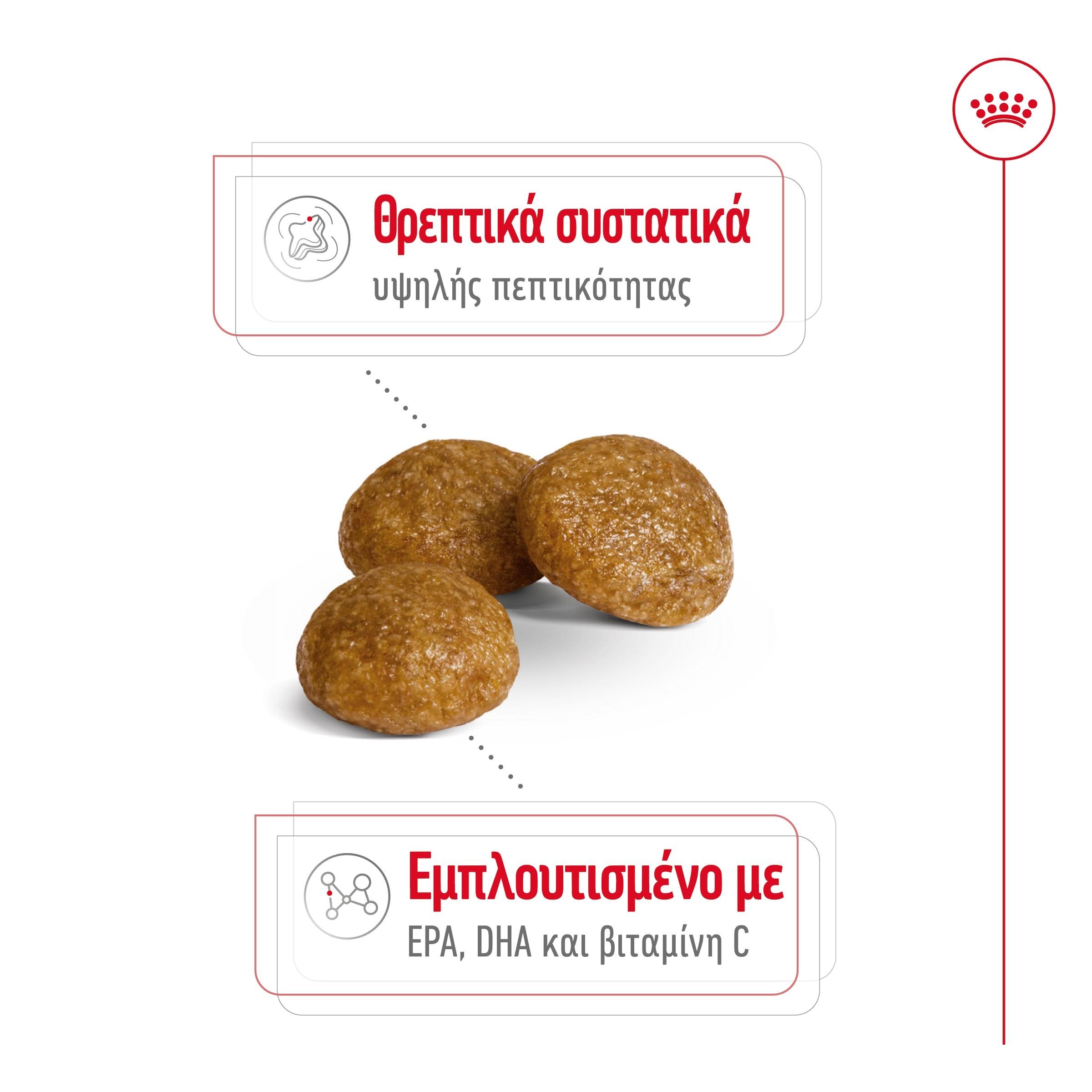Πλήρης τροφή με πουλερικά και ρύζι, ειδικά σχεδιασμένη για πολύ μικρόσωμους ενήλικους σκύλους.Αυτή η τροφή είναι διατροφικά πλήρης και ισορροπημένη, καλύπτοντας τις ιδιαίτερες ανάγκες των μικρόσωμων σκύλων καθ' όλη τη διάρκεια της ενήλικης ζωής τους. Σε αυτό το στάδιο, απαιτούνται συγκεκριμένες θρεπτικές ουσίες που υποστηρίζουν τη δραστηριότητα, την υγεία και τη ζωτικότητα. Η σύνθεση της τροφής περιλαμβάνει θρεπτικές ουσίες υψηλής πεπτικότητας, εξασφαλίζοντας μέγιστη απορρόφηση και βέλτιστη υποστήριξη της υγείας. Η φόρμουλα έχει αναπτυχθεί με αποκλειστικά αρώματα για να καλύπτει ακόμη και τις προτιμήσεις σκύλων με αυξημένη ιδιαιτερότητα στις τροφές. Επιπλέον, η τροφή περιλαμβάνει κροκέτες με προσαρμοσμένο μέγεθος που διευκολύνουν τη μάσηση και παρέχουν δράση βουρτσίσματος, ενώ η προσθήκη χηλικού ασβεστίου βοηθά στη μείωση του σχηματισμού πέτρας.
