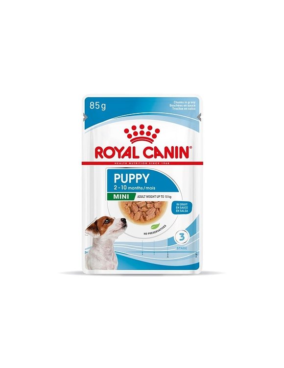 Πλήρης υγρή τροφή με κομματάκια κρέας σε σάλτσα για ανήλικους σκύλους μικρόσωμων φυλών έως 10 μηνών, με αναμενόμενο ενήλικο βάρος έως 10kg. Συμβάλλει στην υγιή ανάπτυξη και στη δημιουργία ενός γερού ανοσοποιητικού συστήματος, αφού η περιεκτικότητά της σε ένα σύμπλεγμα αντιοξειδωτικών, όπως η βιταμίνη Ε, βοηθά στην υποστήριξη των φυσικών αμυνών του κουταβιού σας. Επιπλέον, υποστηρίζει την πεπτική υγεία και την ισορροπία της εντερικής χλωρίδας, ενώ τέλος η ενισχυμένη περιεκτικότητά της σε ενέργεια καλύπτει τις ανάγκες των κουταβιών των μικρόσωμων φυλών.