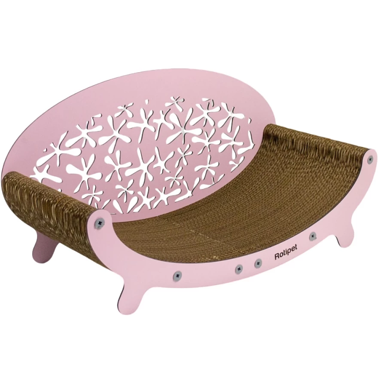 Ονυχοδρόμιο γάτας από πεπιεσμένο χαρτόνι με χρωματιστά μέρη από MDF. Είναι ένα προϊόν που θα ικανοποιήσει το φυσικό ένστικτο της γάτας να ξύνει τα νύχια της. Δεν βλάπτει τα νύχια και τα πόδια τους. Χρησιμοποιήθηκαν ανακυκλωμένα υλικά και οργανική κόλλα. Προστατεύει τα έπιπλα και τα χαλιά σας.
