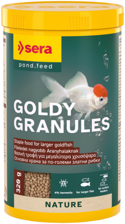 Τα χρυσόψαρα χρειάζονται μια ποικίλη διατροφή που να ανταποκρίνεται στις φυσικές απαιτήσεις τους. Φυσιολογικά, αυτά τα ζώα έχουν ένα ιδιαίτερο χαρακτηριστικό: δεν έχουν στομάχι, αλλά εντερικό τμήμα που μοιάζει με στομάχι και δεν αισθάνονται κορεσμό. Αυτά τα παμφάγα αναζητούν συνεχώς φαγητό. Για να αποφύγετε την υπερβολική σίτιση, καλό είναι να παρέχετε στα χρυσόψαρα μικρές μερίδες εύπεπτης τροφής με εύκολα αφομιώσιμες πρωτεΐνες και υδατάνθρακες πολλές φορές την ημέρα. Τα υψηλής ποιότητας sera Goldfish Foods πληρούν τις διατροφικές απαιτήσεις αυτών των ψαριών κρύου νερού. Το Goldy Flakes και το Goldy Granules είναι δύο βασικές τροφές υψηλής ποιότητας για μικρά ή μεγάλα ψάρια καθώς και τις ιδιαίτερα απαιτητικές οράντες με όλα τα σημαντικά θρεπτικά συστατικά που χρειάζονται. Το Goldy Color είναι κατάλληλο για την υποστήριξη της ανάπτυξης χρώματος. Όλες οι τροφές χρυσόψαρων sera ανήκουν στην περιοχή "Nature" και δεν απαιτούν χρωστικές ούτε συντηρητικά.