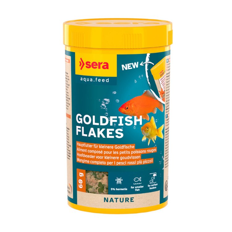 Goldy Nature 250ml, τροφή ιδανική για χρυσόψαρα, σε μορφή νιφάδων, εύπεπτη, με υψηλής ποιότητας πρωτεΐνες και πρεβιοτικά.