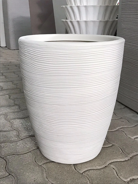 Conico Basso Rigato: Το σχήμα παραμένει Κωνικό Χαμηλό με Ραβδώσεις. Είναι μια γλάστρα με "ανοιχτό" σχήμα, ιδανική για φυτά που αναπτύσσονται προς τα έξω (θαμνώδη).