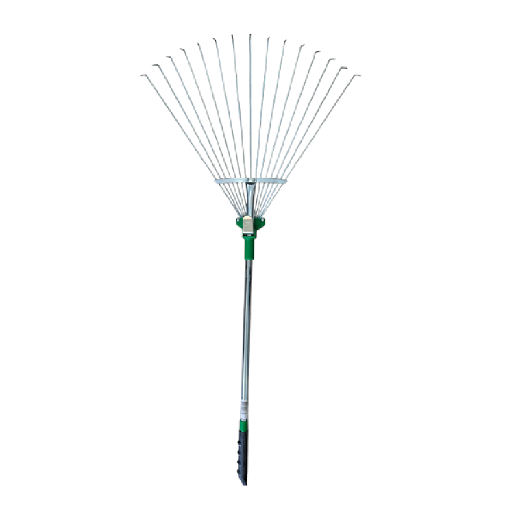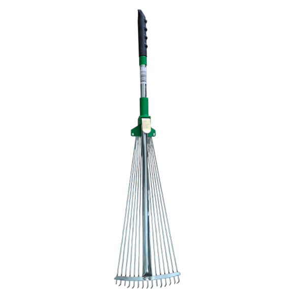 – Σκούπα για τα φύλλα του γκαζόν με πτυσσόμενο κενό ανάμεσα στα δόντια της σκούπας