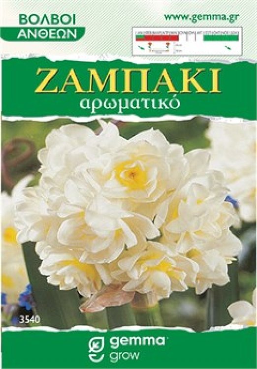 Βολβώδες φυτό φθινοπωρινής φύτευσης. Το ζαμπάκι ή τσαμπάκι που στην περιοχή της Κρήτης ονομάζεται μανουσάκι, είναι είδους νάρκισσου , κυπελλοφόρου. Είναι ο κατ΄ εξοχήν Νάρκισσος των αρχαίων Ελλήνων από το οποίο κατασκεύαζαν το «ναρκίσσινο μύρο». Το ζαμπάκι φτάνει σε ύψος 30-40 εκατοστών και σχηματίζει ομάδα περίπου 10 διπλών λευκών λουλουδιών, που καταλήγει σε κιτρινωπή στεφάνη στο ανώτερο σημείο. Η κάθε συσκευασία περιέχει 2 τεμάχια.
