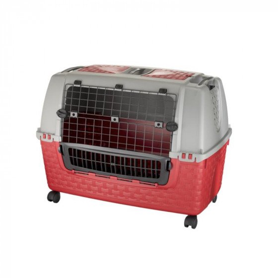 Εξαιρετικά ασφαλές κλουβί μεταφοράς με πλεκτή υφή (rattan), για μεγάλους σκύλους έως 50kg.