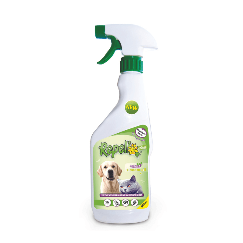 Περιγραφή: To Repeli Nature Spray περιέχει μια εξειδικευμένη φόρμουλα υψηλής δραστικότητας 5 φυτικών εκχυλισμάτων με ισχυρές εντομοαπωθητικές ιδιότητες, τα οποία λόγω της βιο-συνεργιστικής (Bio-synergy) τους δράσης προσφέρουν μοναδικά αποτελέσματα. Έτσι, χάρη στη ειδική σύνθεσή του απωθεί τα ενοχλητικά και επικίνδυνα έντομα (σκνίπες, κουνούπια κ.α.), καθώς και ακάρεα (τσιμπούρια), ψύλλους κ.α. που παρασιτούν στα ζώα και είναι φορείς σοβαρών μεταδιδόμενων ασθενειών και μολύνσεων όπως η Λεϊσμανίαση (Καλά-Αζάρ), Διροφιλαρίωση, Ερχιλίωση κ.α. Το Repeli Nature Spray εκτός άλλων, περιέχει το φυσικό και πολύτιμο έλαιο neem το οποίο προέρχεται από τους καρπούς, τα φύλλα και τον κορμό του δέντρου, που φύεται στη νοτιοανατολική Ινδία και το Μπαγκλαντές. To neem εμπεριέχει τέσσερα ισχυρά φυσικά απωθητικά συστατικά με διαφορετικά χαρακτηριστικά, που όλα ωστόσο βοηθούν στην διακοπή του κύκλου ζωής των εντόμων σε όλα τα στάδια (αυγά, νεογνά, ενήλικα έντομα). Ψεκάζοντας με Repeli Nature Spray, το ζώο σας μπορεί να κυκλοφορεί άνετα σε εξωτερικούς χώρους δίχως τον φόβο τσιμπημάτων. Χάρη στα φυσικά, μη-τοξικά συστατικά του, το Repeli Nature Spray είναι εντελώς ασφαλές για το ζώο και τον άνθρωπο. Το έλαιο neem διακρίνεται επίσης για την ενυδατική του δράση και συντελεί για ένα λαμπερό και μαλακό τρίχωμα.
