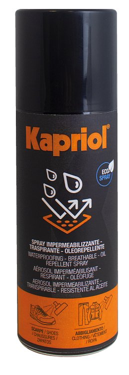 Σπρέι αδιαβροχοποίησης της Kapriol, ιδανικό για προστασία από την υγρασία. Είναι αδιάβροχο και αναπνεύσιμο, προσφέροντας αξιόπιστη προστασία σε παπούτσια και ενδύματα. Διατίθεται σε συσκευασία 200 ml.