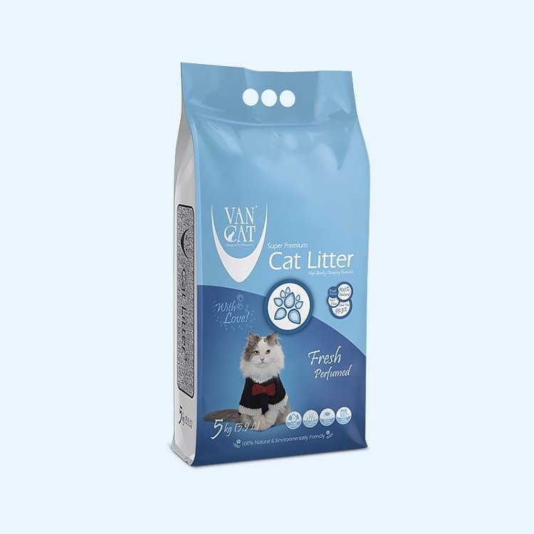 Fresh Clumping (Λευκή Αρωματική) Η λευκή άμμος Van Cat Fresh έχει ψιλό κόκκο (0,6mm – 2,25mm) από 100% λευκό φυσικό μπετονίτη και ένα ελαφρύ άρωμα φρεσκάδας. Προσφέρει άριστη απορρόφηση υγρών, δέσμευση δυσάρεστων οσμών και τέλεια συγκόλληση σβόλων. Διαρκεί 5 φορές περισσότερο από τις συνηθισμένες άμμους. Δεν περιέχει καθόλου σκόνη, είναι υποαλλεργική & φιλική προς το περιβάλλον.