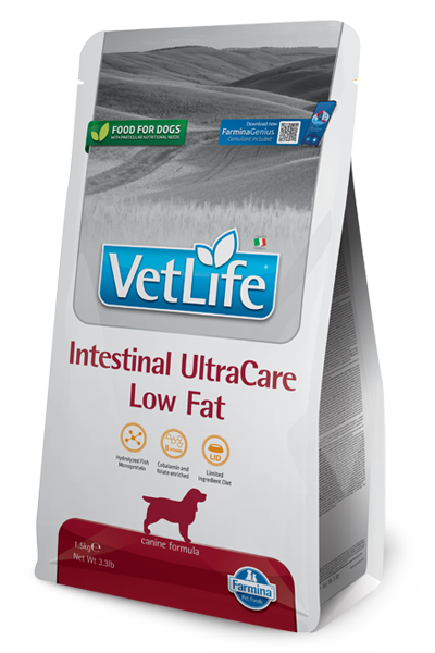 H Farmina Vet Life Intestinal Ultra Care είναι μια πλήρης διαιτητική ζωοτροφή για σκύλους για μείωση οξειών διαταραχών της απορροφητικής λειτουργίας του εντέρου.