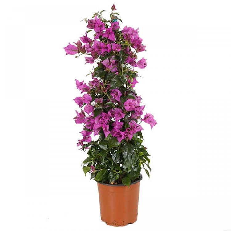 Η μπουκαμβίλια είναι φυλλοβόλο φυτό, τα φύλλα της φέρουν μίσχους είναι ακέραια, μεγάλα, χνουδωτά και έχουν σχήμα καρδιάς ή νεφρού. Τα άνθη της είναι όμορφα, ζωηρόχρωμα, μετρίου μεγέθους σε ποικίλους χρωματισμούς. Η υφή τους είναι χάρτινη και με την πάροδο μερικών εβδομάδων πέφτουν και αντικαθίστανται με καινούργια. Υπάρχει σε διάφορες ποικιλίες χρωμάτων όπως: Μπορντώ , Βυσσινί , Φούξια , Ρόζ , Λευκό , Κίτρινο , Μωβ, Πορτοκαλί. Οι βλαστοί της μπουκαμβίλιας είναι ξυλώδεις και διακλαδώνονται, αναρριχώνται και φτάνουν σε ύψος και τα 12 μέτρα.[1] Πολλαπλασιάζεται με μοσχεύματα αρκετά εύκολα και δεν αντιμετωπίζει προβλήματα με τη σύνθεση του εδάφους. Είναι ευαίσθητη στο ψύχος και αγαπά τις ηλιόλουστες περιοχές.[1][2]