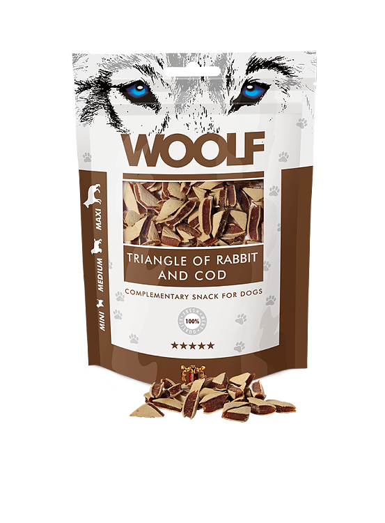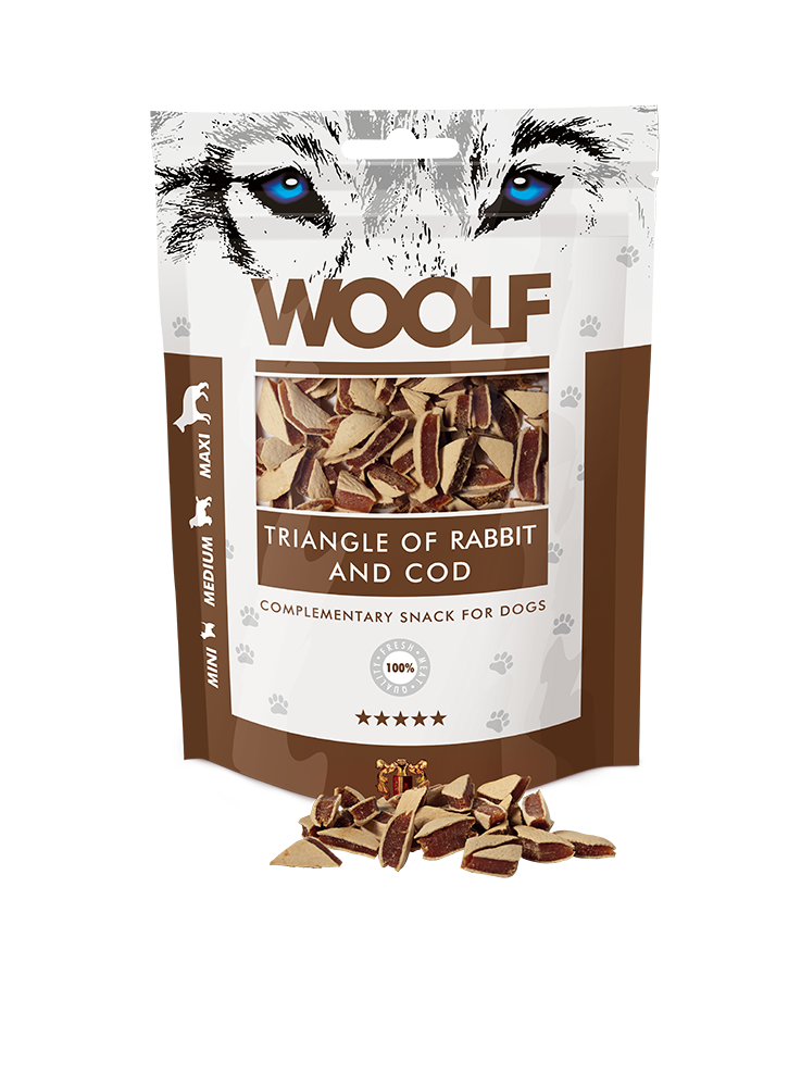 Συμπληρωαμτικό σνακ για σκύλους με τρίγωνα των κουνελίων και γάδου.