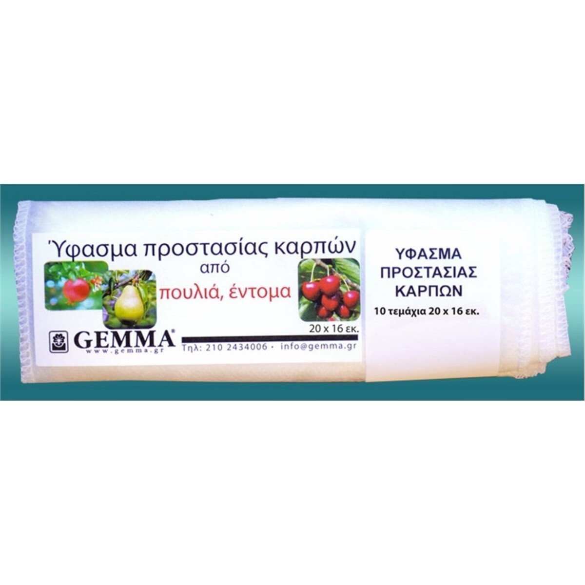 Προστατεύει φρούτα όπως αχλάδια, κεράσια κ.α. από πουλιά και έντομα. Διαστάσεων: 0,20 x 0,16 m.